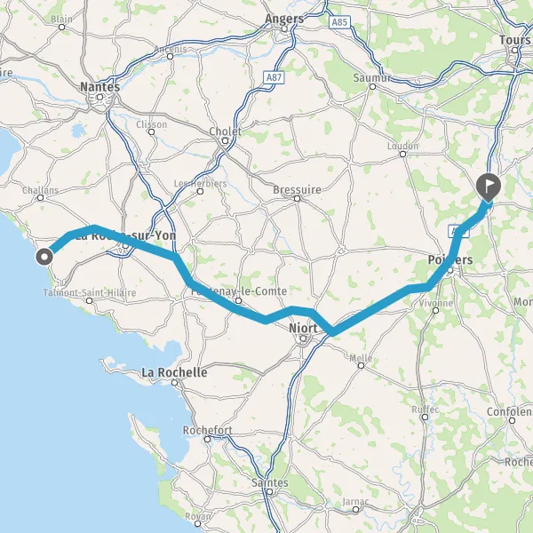 Prendre à droite et rejoindre A83 E3. Continuer sur 80 kilomètres