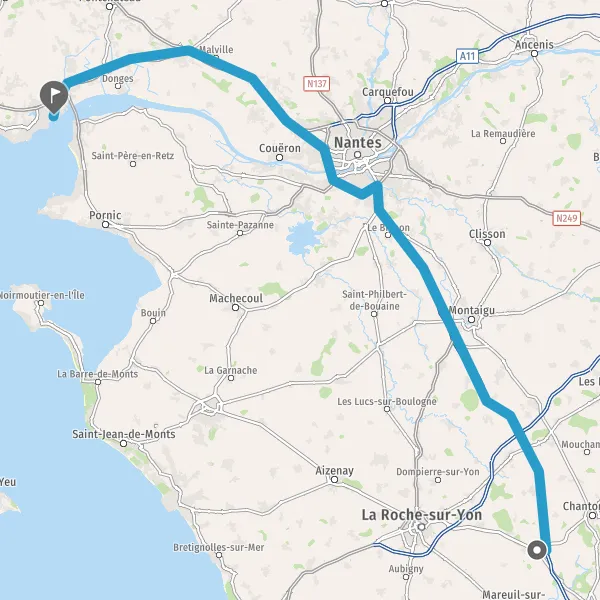 Continuer et rejoindre A83 E3. Continuer sur 69 kilomètres