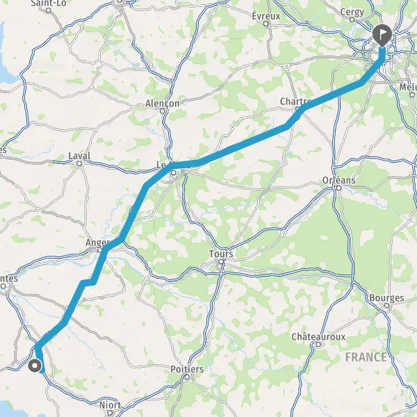 Prendre à droite et rejoindre A11 E60 E501. Continuer sur 234 kilomètres