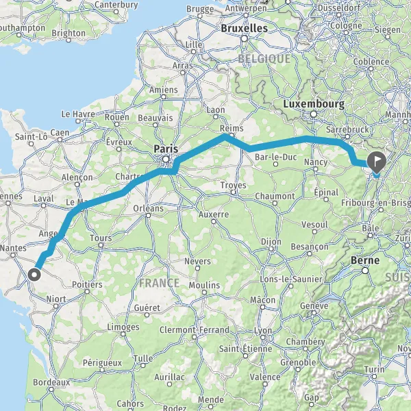 Prendre à droite et rejoindre A11 E60 E501. Continuer sur 234 kilomètres