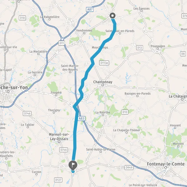 Prendre à gauche et rejoindre A83 E3. Continuer sur 33 kilomètres
