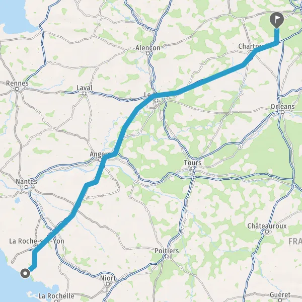 Prendre à droite et rejoindre A11 E60 E501. Continuer sur 226 kilomètres