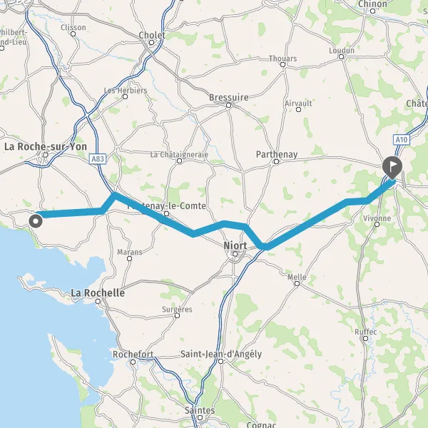 Prendre à droite et rejoindre A83. Continuer sur 69 kilomètres