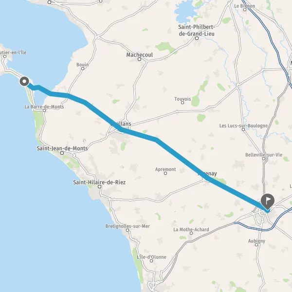 Au rond-point, prendre la 2ème sortie sur D948 (Route du Gois) et continuer sur 10 kilomètres