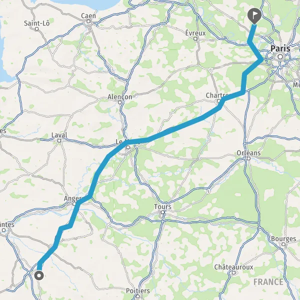 Prendre à droite et rejoindre A11 E60 E501. Continuer sur 226 kilomètres