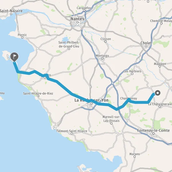 Au rond-point, prendre la 2ème sortie sur D948 (Route de La Roche-sur-Yon) et continuer sur 4,3 kilomètres