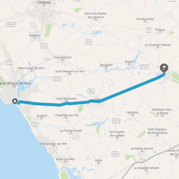 Au rond-point, prendre la 4ème sortie sur D6 (Route d'Aizenay) et continuer sur 8,6 kilomètres