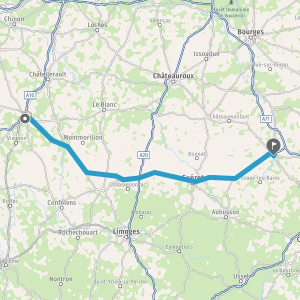Au rond-point, prendre la 2ème sortie sur D943 (Route de Culan) et continuer sur 22 kilomètres