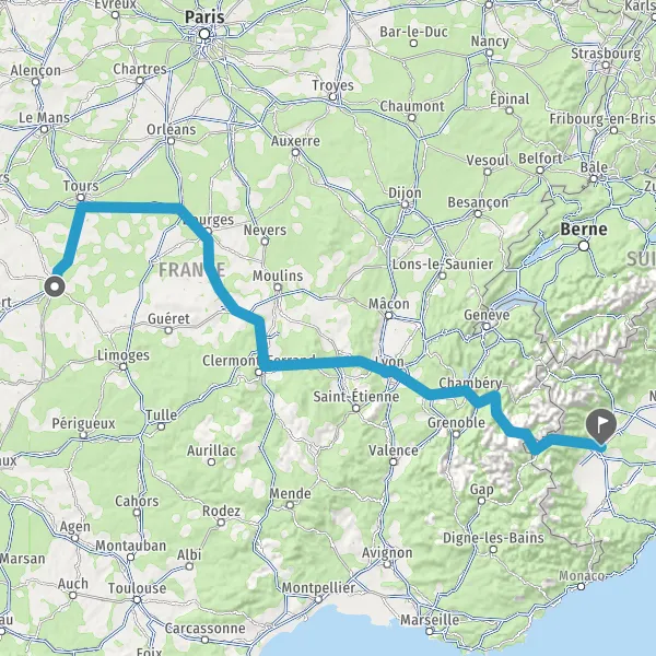 Prendre à droite et rejoindre E712 E70 (E70). Continuer sur 550 mètres