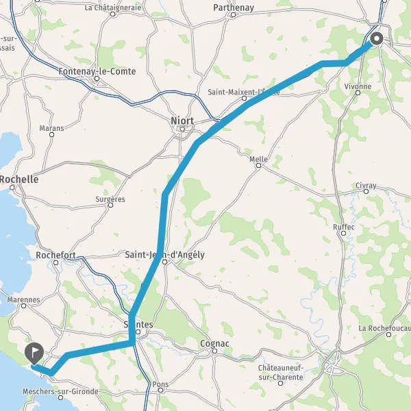Au rond-point, prendre la 2ème sortie sur N150 (Route de Royan) et continuer sur 1,3 kilomètre
