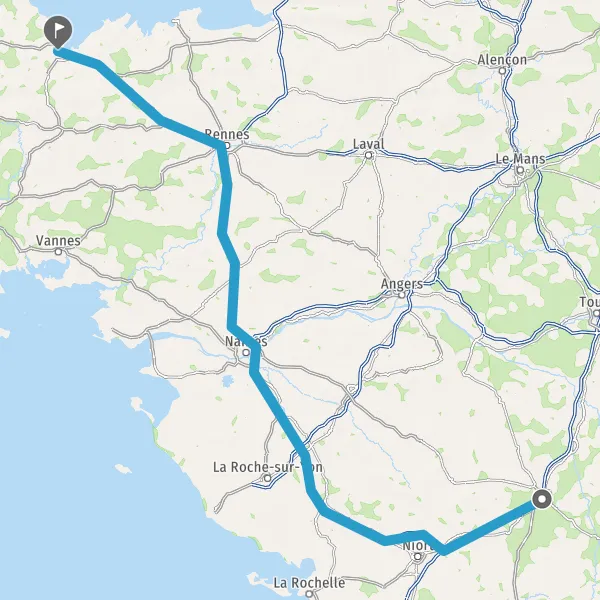 Prendre à droite et rejoindre A83. Continuer sur 150 kilomètres