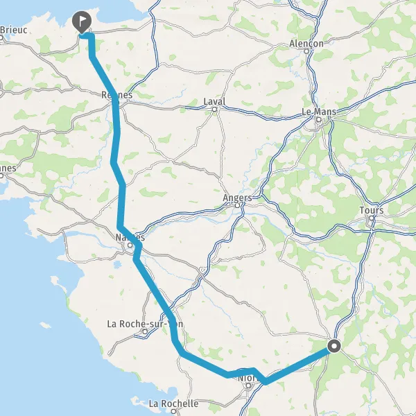 Prendre à droite et rejoindre A83. Continuer sur 150 kilomètres