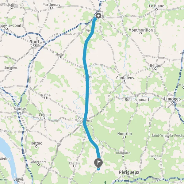 Au rond-point, prendre la 2ème sortie sur D709 D708 (Route d'Angoulême) et continuer sur 550 mètres