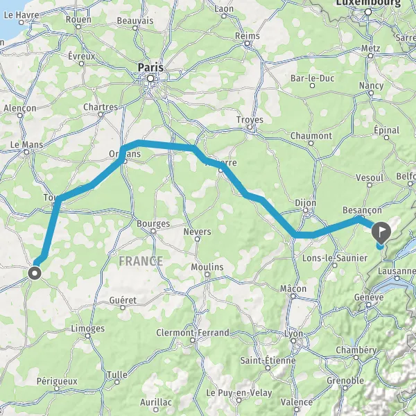 Prendre à droite et rejoindre A36. Continuer sur 82 kilomètres