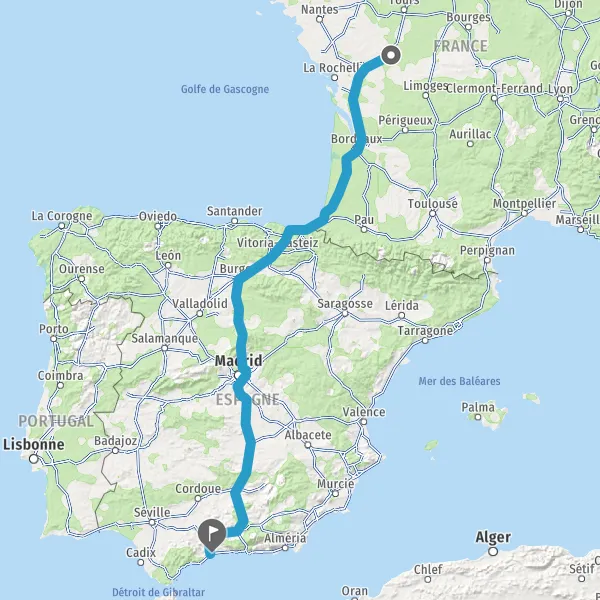 Prendre à droite et rejoindre A63. Continuer sur 205 kilomètres