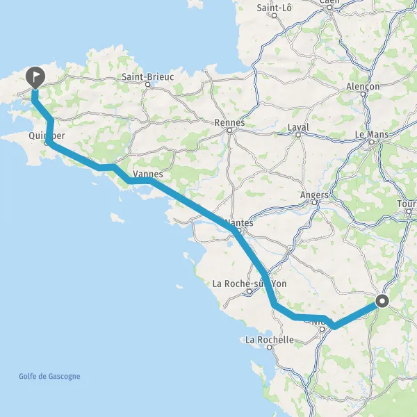 Prendre à droite et rejoindre A83. Continuer sur 150 kilomètres