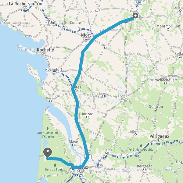 Au rond-point, prendre la 1ère sortie sur D6 (Avenue de Bordeaux) et continuer sur 850 mètres