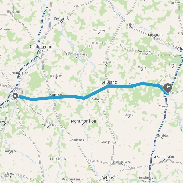 Continuer D951 (Rue de Chauvigny) sur 400 mètres
