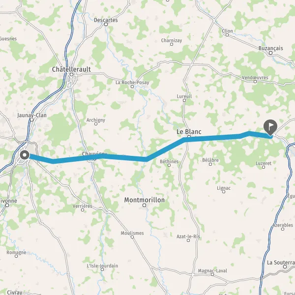 Au rond-point, prendre la 1ère sortie sur D951 (Route de Chauvigny) et continuer sur 2,1 kilomètres
