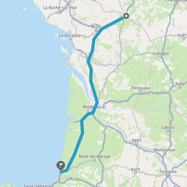 Prendre à droite et rejoindre A63. Continuer sur 154 kilomètres