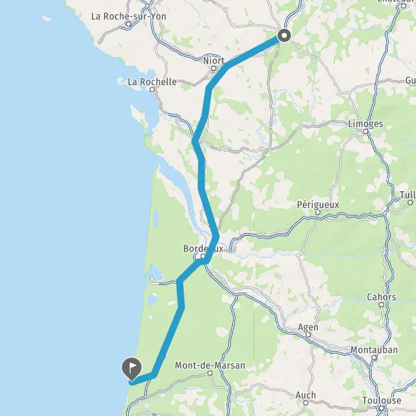 Prendre à droite et rejoindre A63. Continuer sur 117 kilomètres