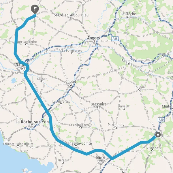 Prendre à droite et rejoindre A83. Continuer sur 150 kilomètres