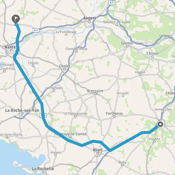 Prendre à droite et rejoindre A83. Continuer sur 150 kilomètres
