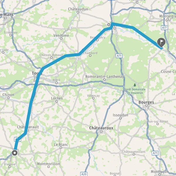 Prendre à droite et rejoindre A71. Continuer sur 5,5 kilomètres