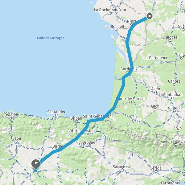 Prendre à droite et rejoindre A63. Continuer sur 205 kilomètres