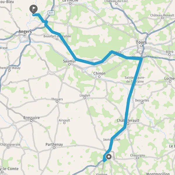 Continuer et rejoindre A85 E60. Continuer sur 99 kilomètres