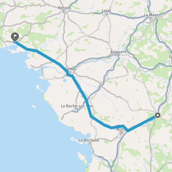 Prendre à droite et rejoindre A83. Continuer sur 150 kilomètres