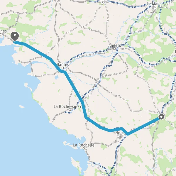 Prendre à droite et rejoindre A83. Continuer sur 150 kilomètres