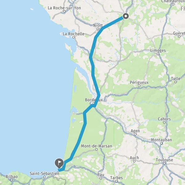 Prendre à droite et rejoindre A63. Continuer sur 183 kilomètres