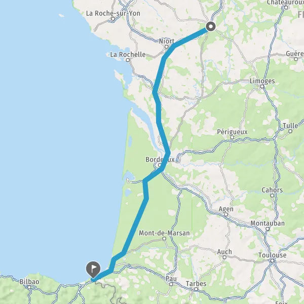 Prendre à droite et rejoindre A63. Continuer sur 205 kilomètres