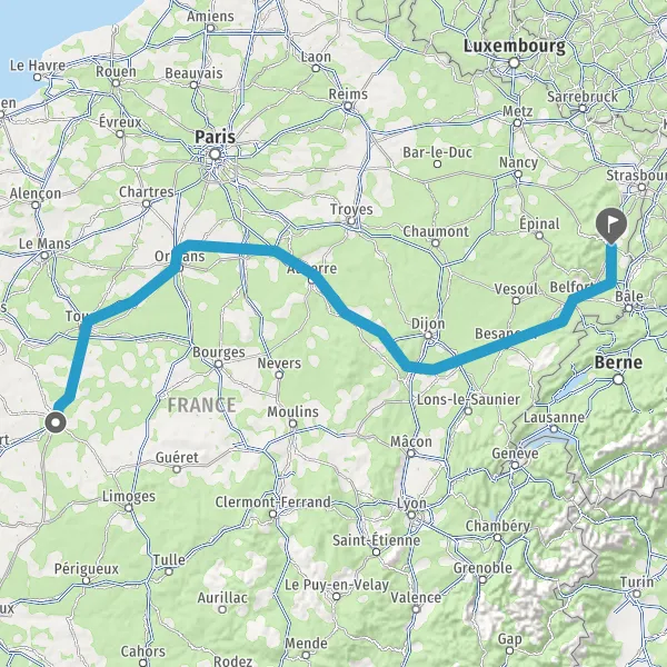 Prendre à droite et rejoindre A36. Continuer sur 225 kilomètres