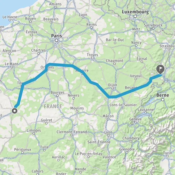 Prendre à droite et rejoindre A36. Continuer sur 221 kilomètres