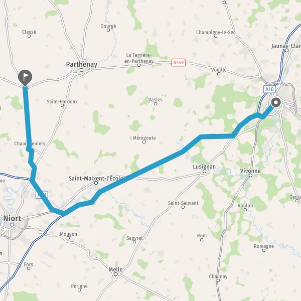 Au rond-point, prendre la 2ème sortie sur Route de Parthenay et continuer sur 1,3 kilomètre