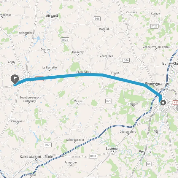 Au rond-point, prendre la 2ème sortie sur Route de Parthenay et continuer sur 1,3 kilomètre