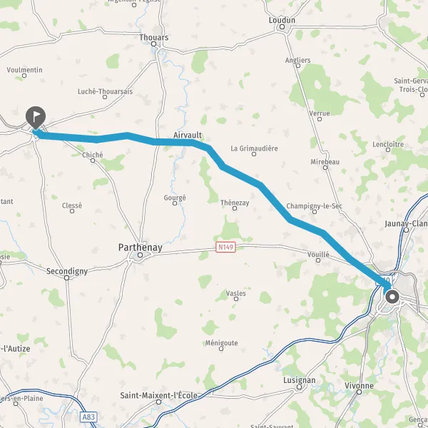 Au rond-point, prendre la 2ème sortie sur Route de Parthenay et continuer sur 1,3 kilomètre