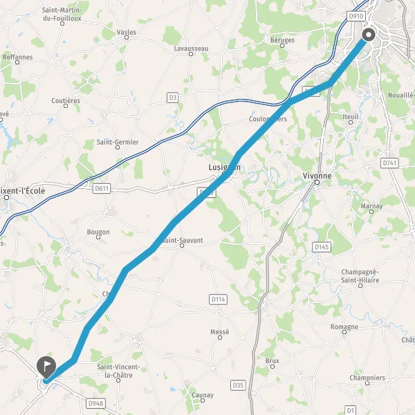 Au rond-point, prendre la 1ère sortie sur D150 (Avenue de Poitiers) et continuer sur 3,1 kilomètres
