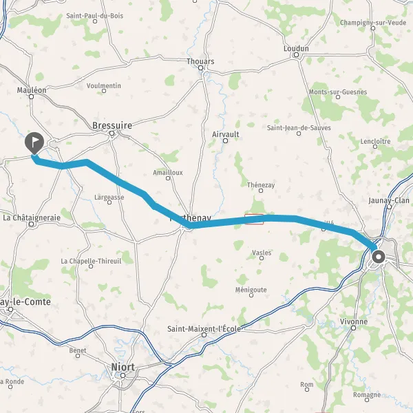 Au rond-point, prendre la 2ème sortie sur Route de Parthenay et continuer sur 1,3 kilomètre