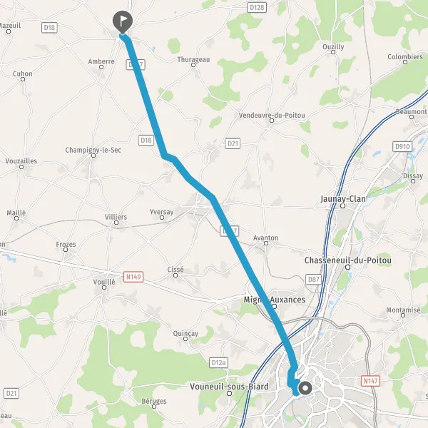 Au rond-point, prendre la 2ème sortie sur D757 (Rue de Poitiers) et continuer sur 3,1 kilomètres