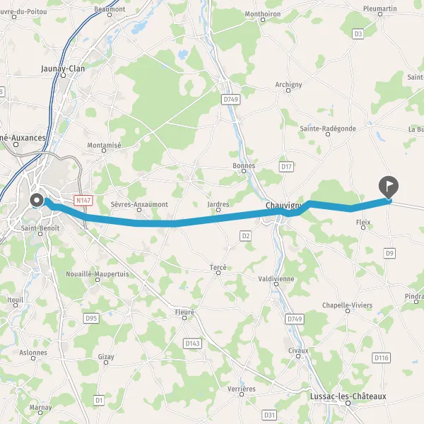 Continuer D951 (Rue de Chauvigny) sur 400 mètres