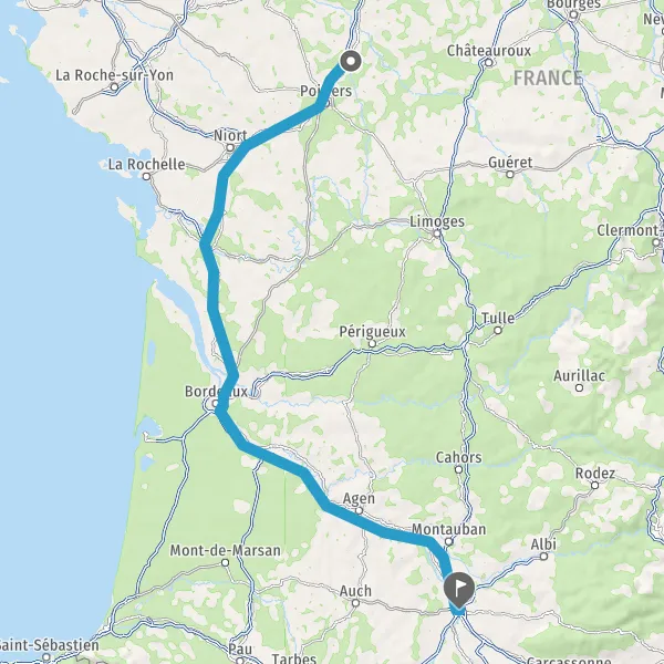 Prendre à gauche et rejoindre A62 E72. Continuer sur 224 kilomètres