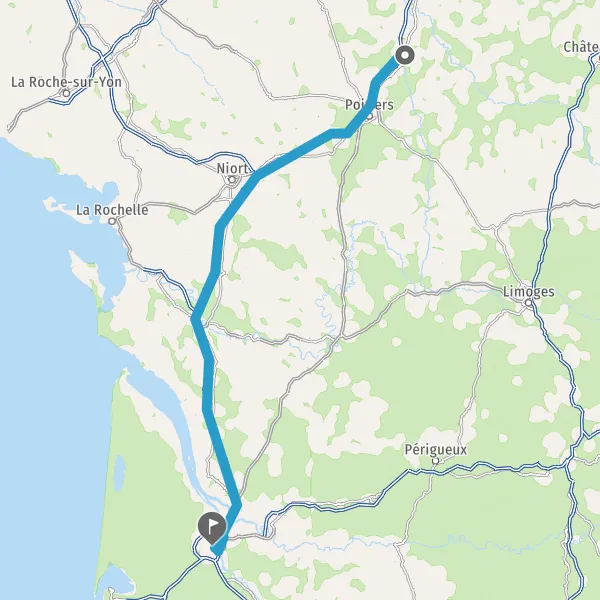 Avec le mode voiture, vous pouvez configurer vos options (type de véhicule, autoroute ou non, péage ou non, distance la plus courte), tout en ayant accès aux infos de circulation grâce à notre service d'info-trafic en temps réel. Ainsi faites des économies sur le coût ou la durée de votre voyage, en trouvant le trajet Châtellerault Bordeaux adapté à vos besoins.