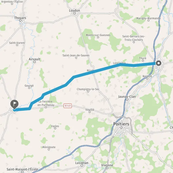 Tourner légèrement à droite sur D725 (Rue de Lencloitre) et continuer sur 5,3 kilomètres