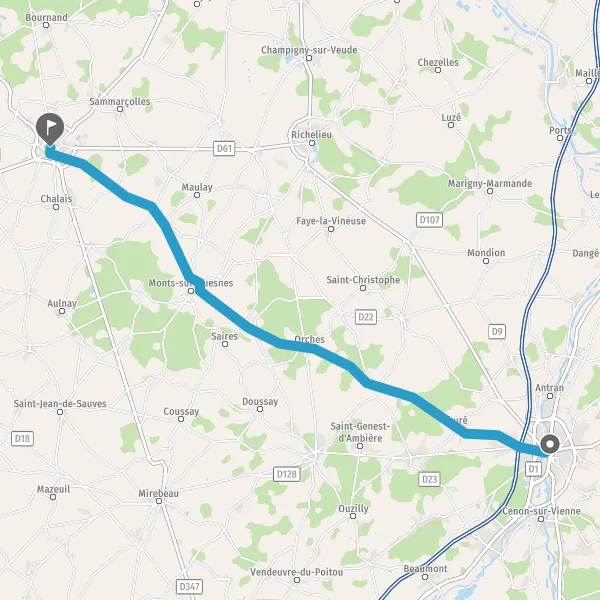Au rond-point, prendre la 1ère sortie sur D14 (Route de Loudun) et continuer sur 4,4 kilomètres