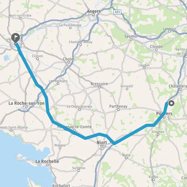 Prendre à droite et rejoindre A83. Continuer sur 150 kilomètres