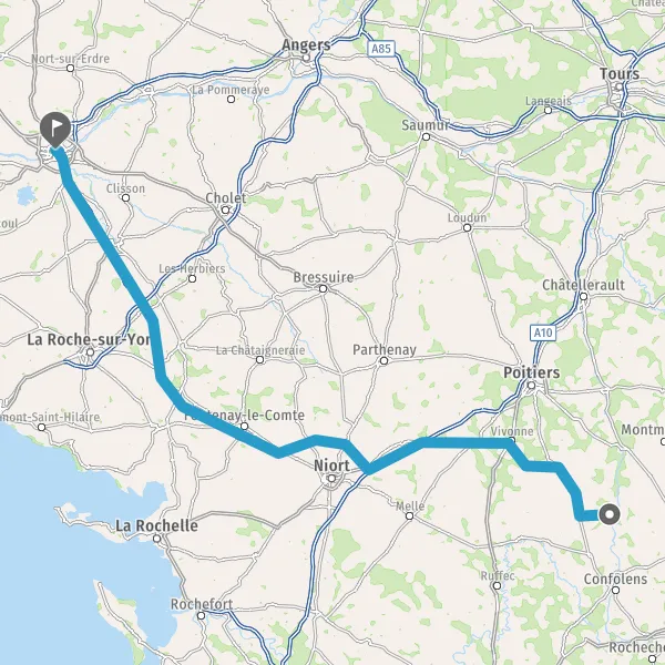 Prendre à droite et rejoindre A83. Continuer sur 150 kilomètres