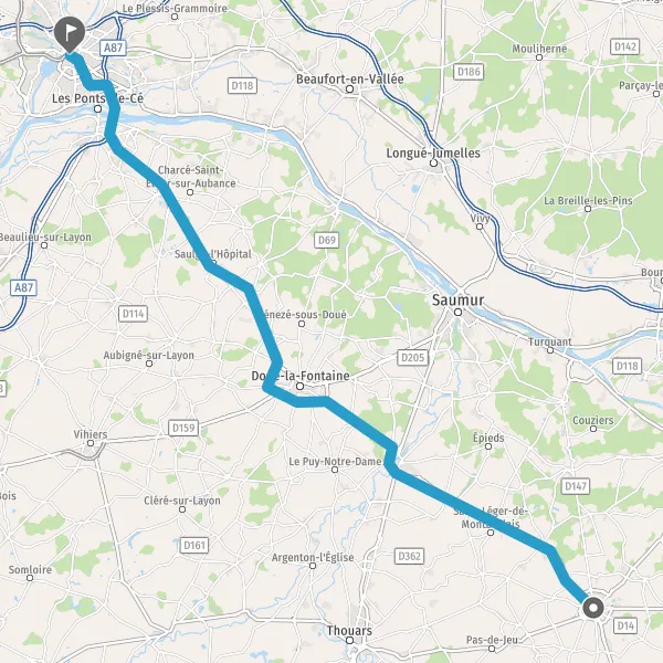 Prendre à droite et rejoindre A87. Continuer sur 4,9 kilomètres